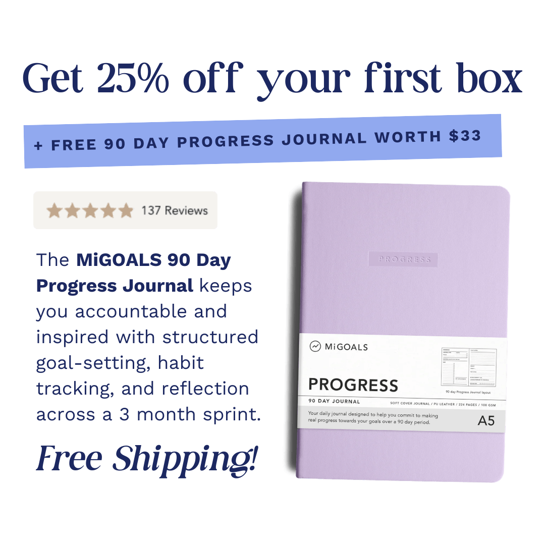 Get 25% off your first box + a bonus gift on a Multi-Month Plan. Join 1,500+ women working toward big goals!